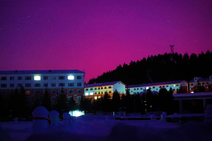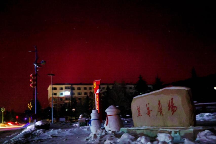 當(dāng)日清晨5時(shí)30分,阿木爾林業(yè)局北方天空悄然浮現(xiàn)橘紅色北極光,澄澈夜空中,流動的極光如彩綢漫舞,搭配漫天璀璨星河、靜謐連綿群山,還有城鎮(zhèn)里惺忪的燈光,共同勾勒出一幅夢幻綺麗的北國畫卷,裸眼即可清晰觀賞。當(dāng)?shù)鼐用裉婆康谝粫r(shí)間記錄下這一美景,難掩興奮:“往年總盼著夏至能拍到北極光,沒想到冬季也能邂逅這般盛景,親身感受宇宙的壯麗浩瀚,太幸運(yùn)了!”