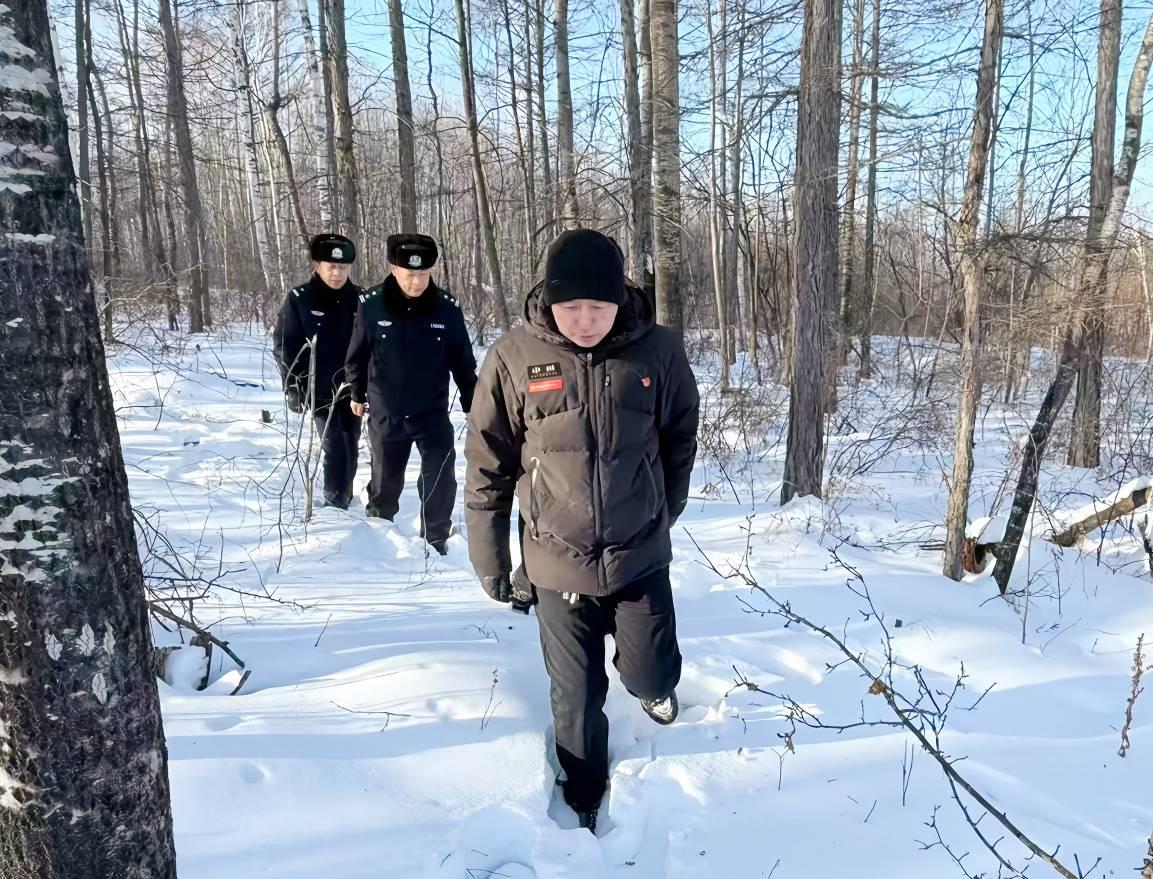 林場聯(lián)合屬地相關(guān)單位開展巡山清套檢查(周雪梅 攝)