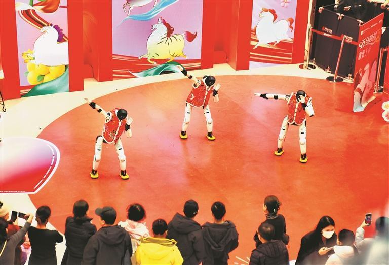 19日,正月初三。哈爾濱市道里區(qū)一家大型商場舉行了機(jī)器人舞蹈表演,吸引許多市民游客駐足觀看。走進(jìn)場地的三個(gè)機(jī)器人身高1.5米左右,穿著紅色棉坎肩,十分喜慶。在音樂伴奏下,它們翩翩起舞,動(dòng)作整齊劃一。表演結(jié)束后,機(jī)器人走進(jìn)人群,與大家握手、合影、互動(dòng)。春節(jié)假期,哈爾濱市多家商場都推出了機(jī)器人表演,讓市民游客與最新科技來個(gè)親密接觸。