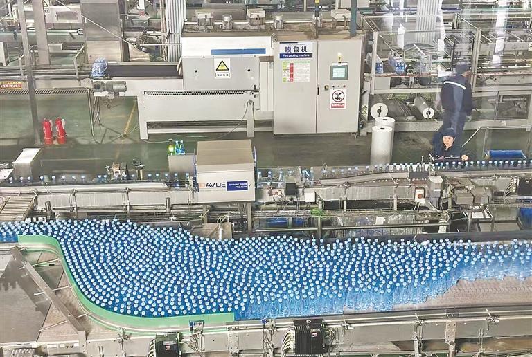 “吹瓶、灌裝、旋蓋一體機(jī)是我們生產(chǎn)線上最有含金量的設(shè)備,瓶坯經(jīng)過(guò)高溫加熱、壓縮空氣吹制,再完成灌裝、旋蓋,全程無(wú)菌操作,確保每一滴水都純潔無(wú)瑕。”生產(chǎn)車間主任劉恒介紹,該設(shè)備生產(chǎn)能力可達(dá)每秒10瓶,搭配全新的視覺檢測(cè)儀、稱重機(jī)和每分鐘可打包30箱產(chǎn)品的箱包機(jī),讓生產(chǎn)效率與產(chǎn)品標(biāo)準(zhǔn)雙提升。