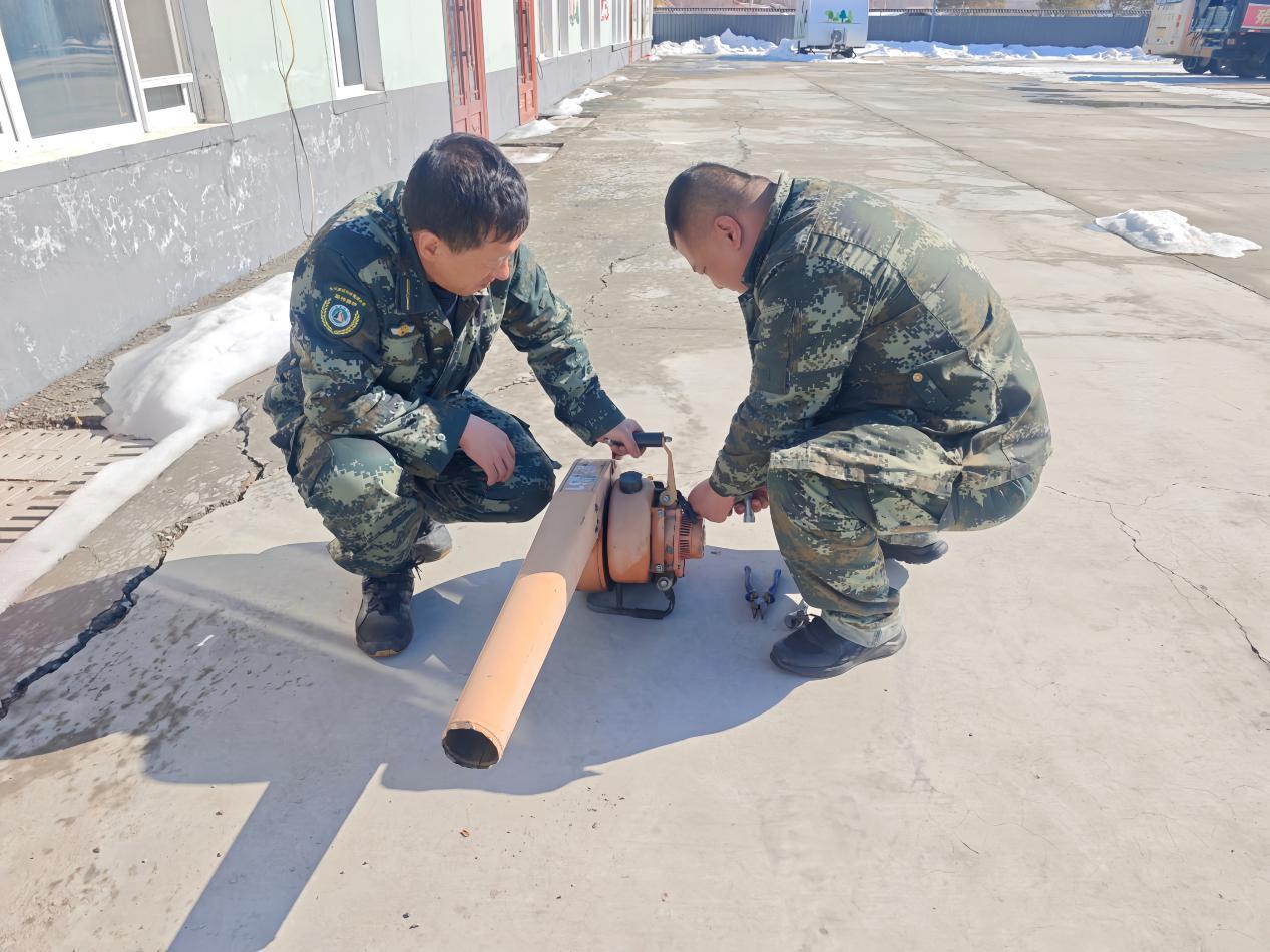 林場專業(yè)人員正在檢修風(fēng)力滅火機(李輝 攝)